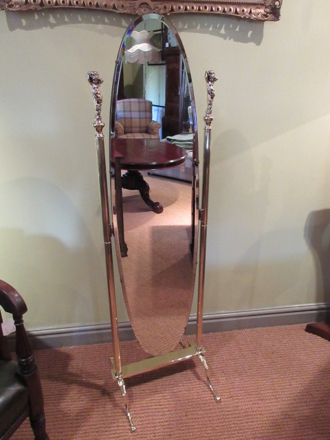 Top Quality Cast Brass Oval Cheval Mirror c.1920