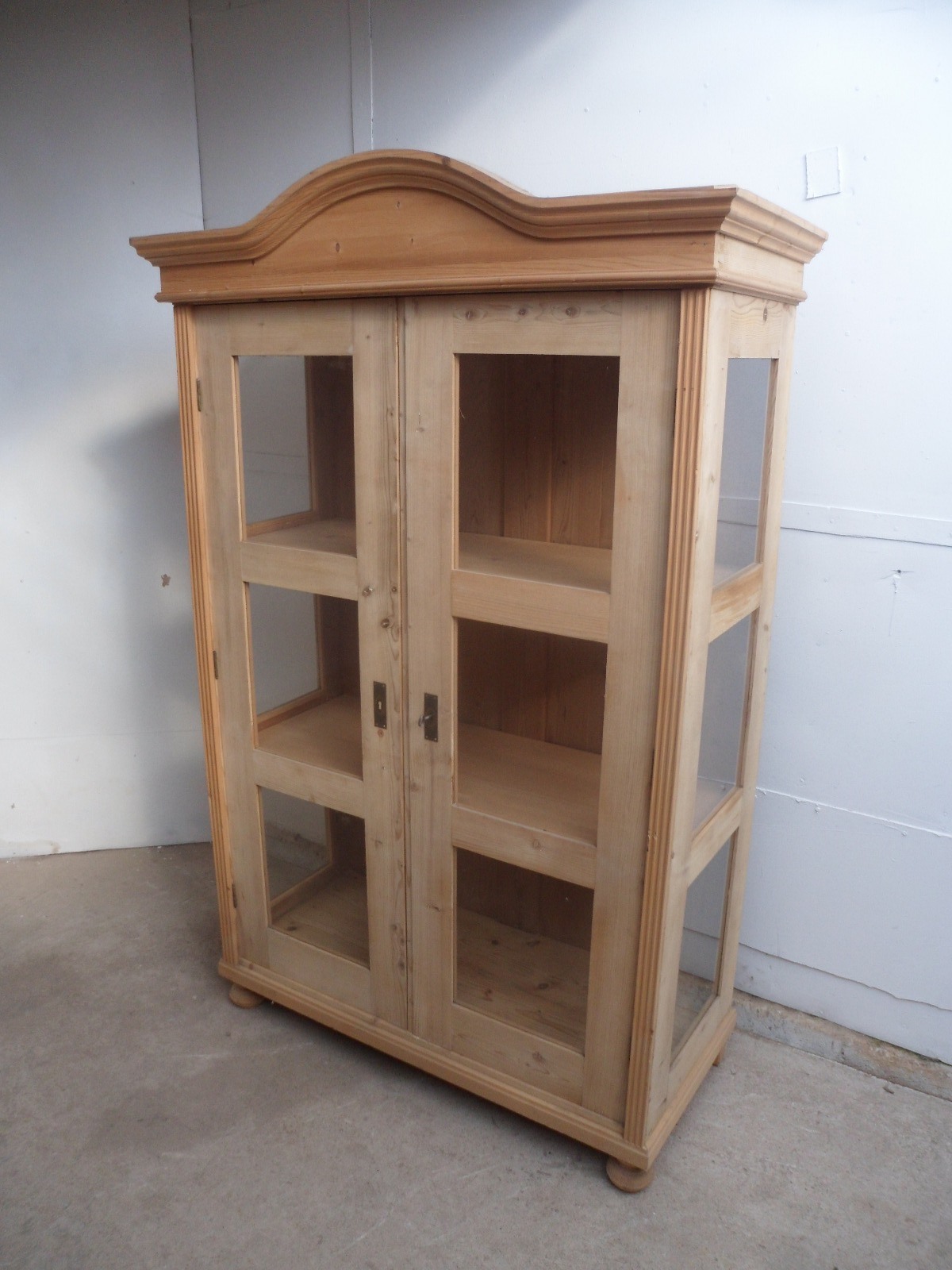 Top Quality Old Pine 6 Panel Glazed Large Display Cabinet to wax / paint