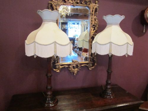 Top Quality Pair of Edwardian Reeded Lamps & Shades