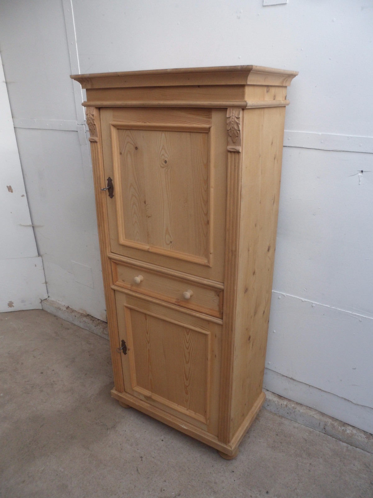 Top Quality Pine Tall Thin 2 Door 1 Drawer Cupboard to wax / paint c.1920