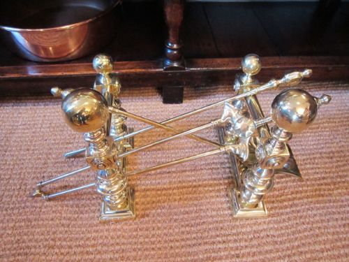 Top Quality Victorian Brass Fire Irons & Dogs Set c.1870