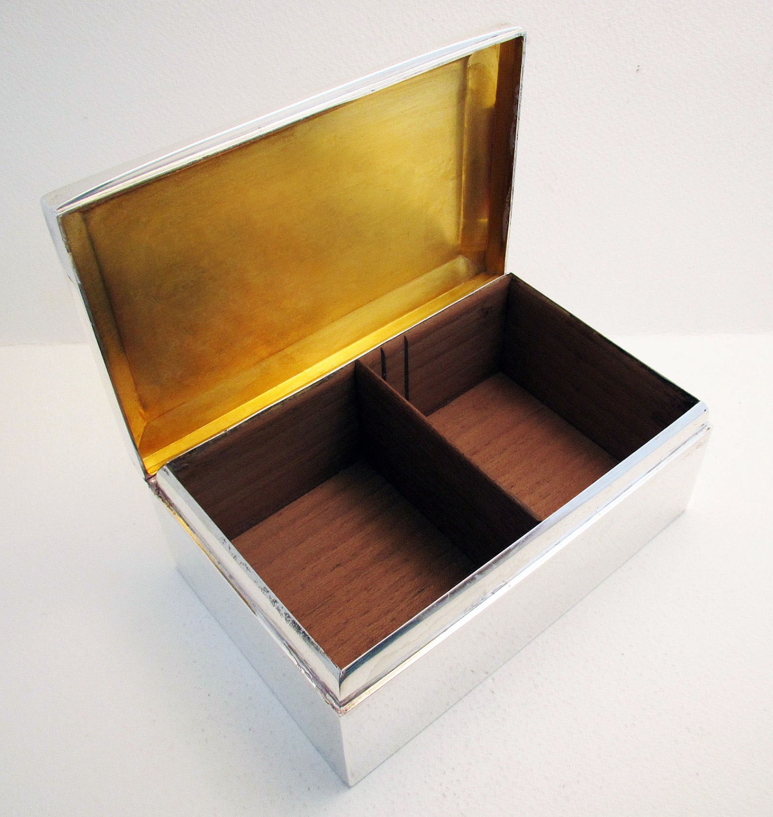 Top Quality Walker & Hall Antique Solid Sterling Silver Cigarette Cigar Trinket Jewelry Casket Case Box. Modernist/Minimalist 1914