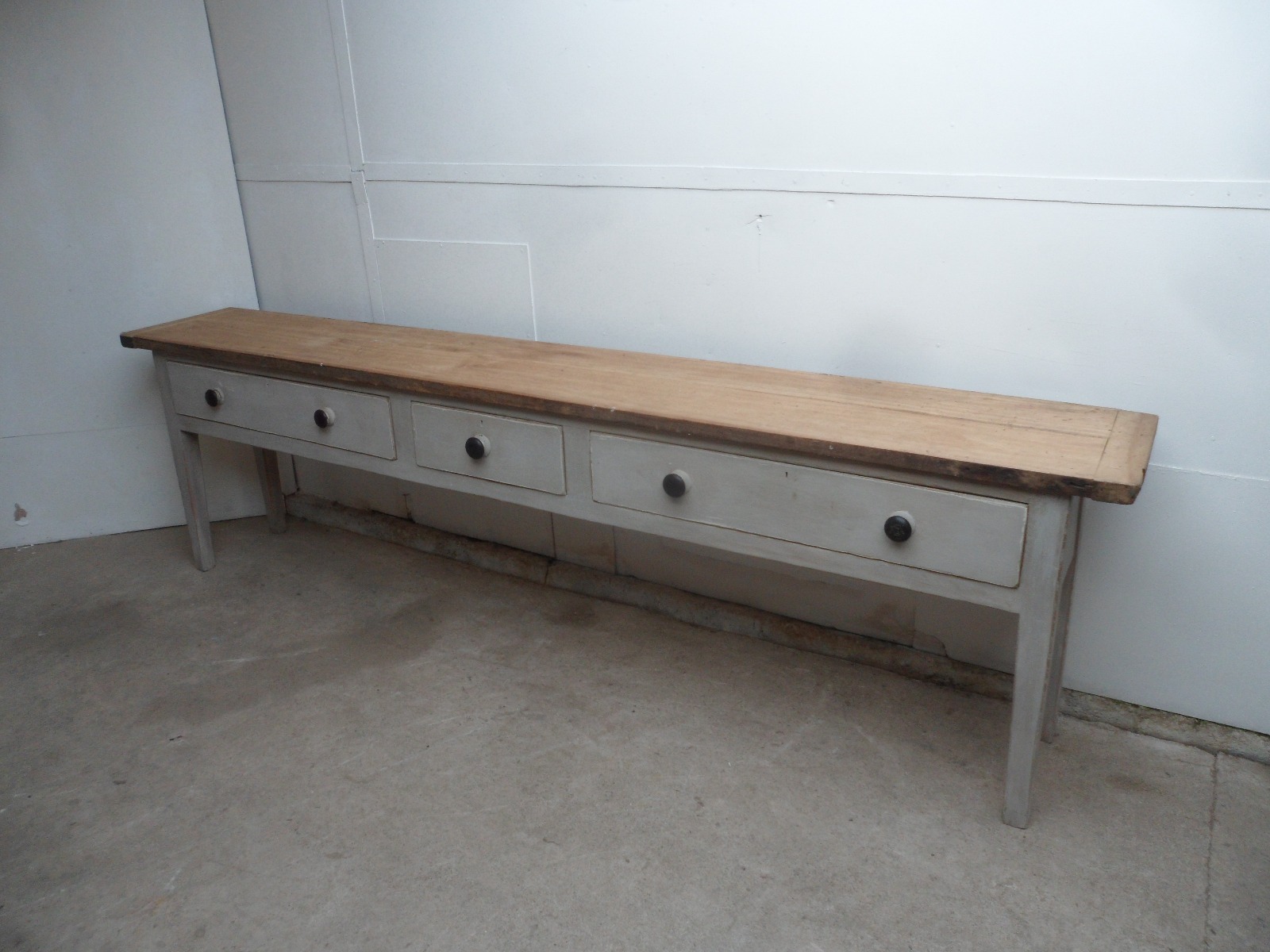 Totally Amazing Late Victorian Painted Shabby Chic 3 Drawer 3 Metre Pine Server