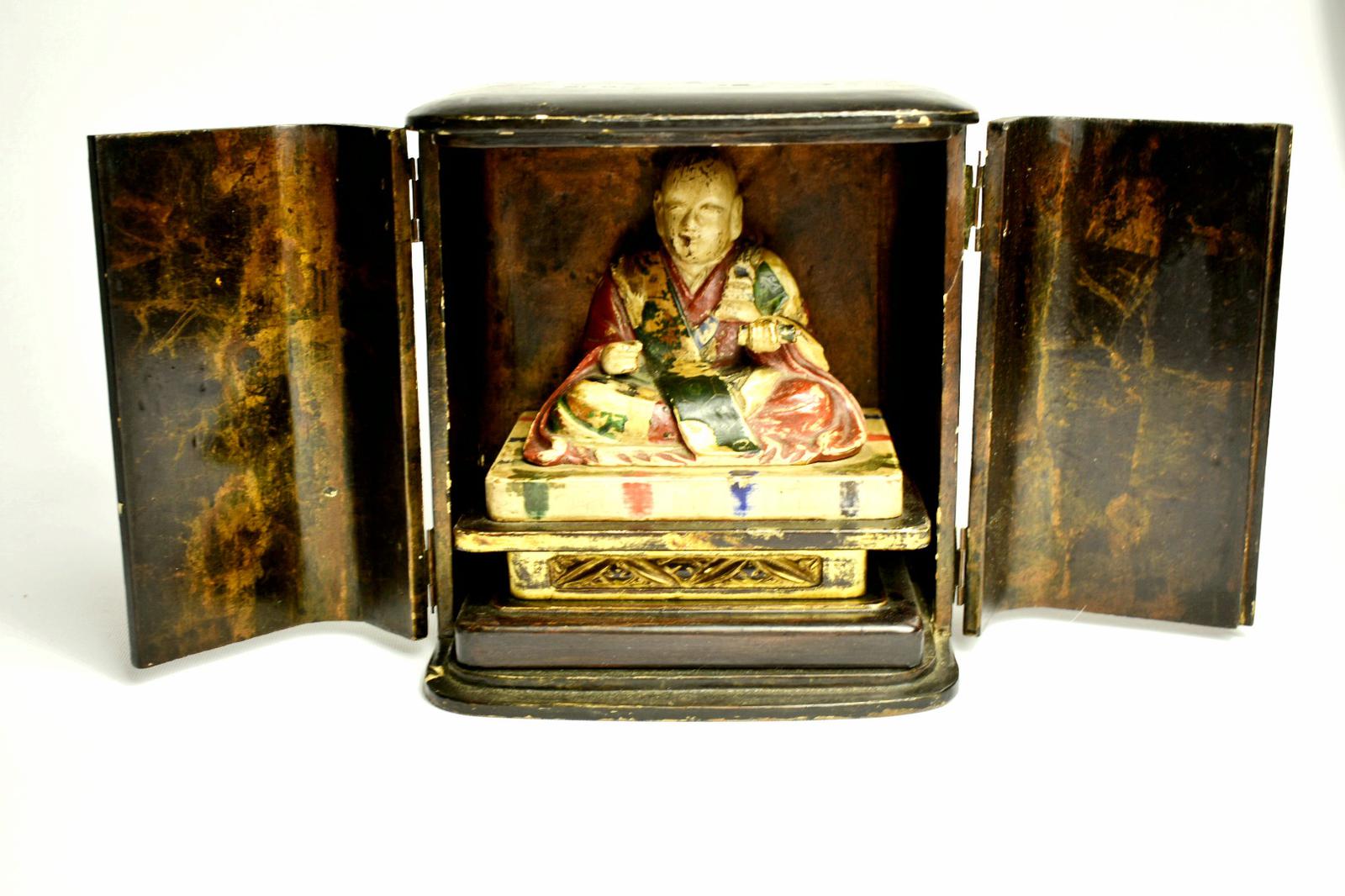 Travelers 19th Century Japanese Buddha/ deity in black lacquered case