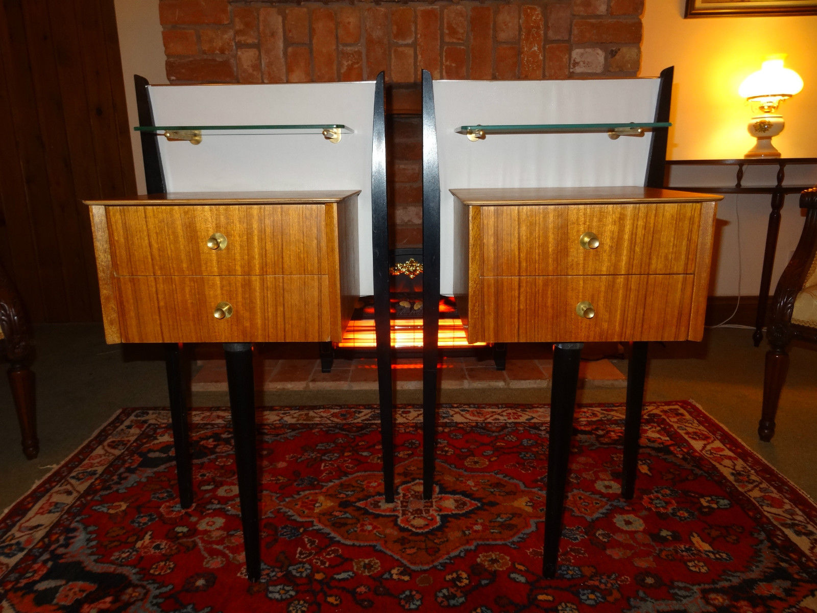 Trendy Designer Pair of 1950's Retro Vintage Teak & Ebony Bedside Cabinets