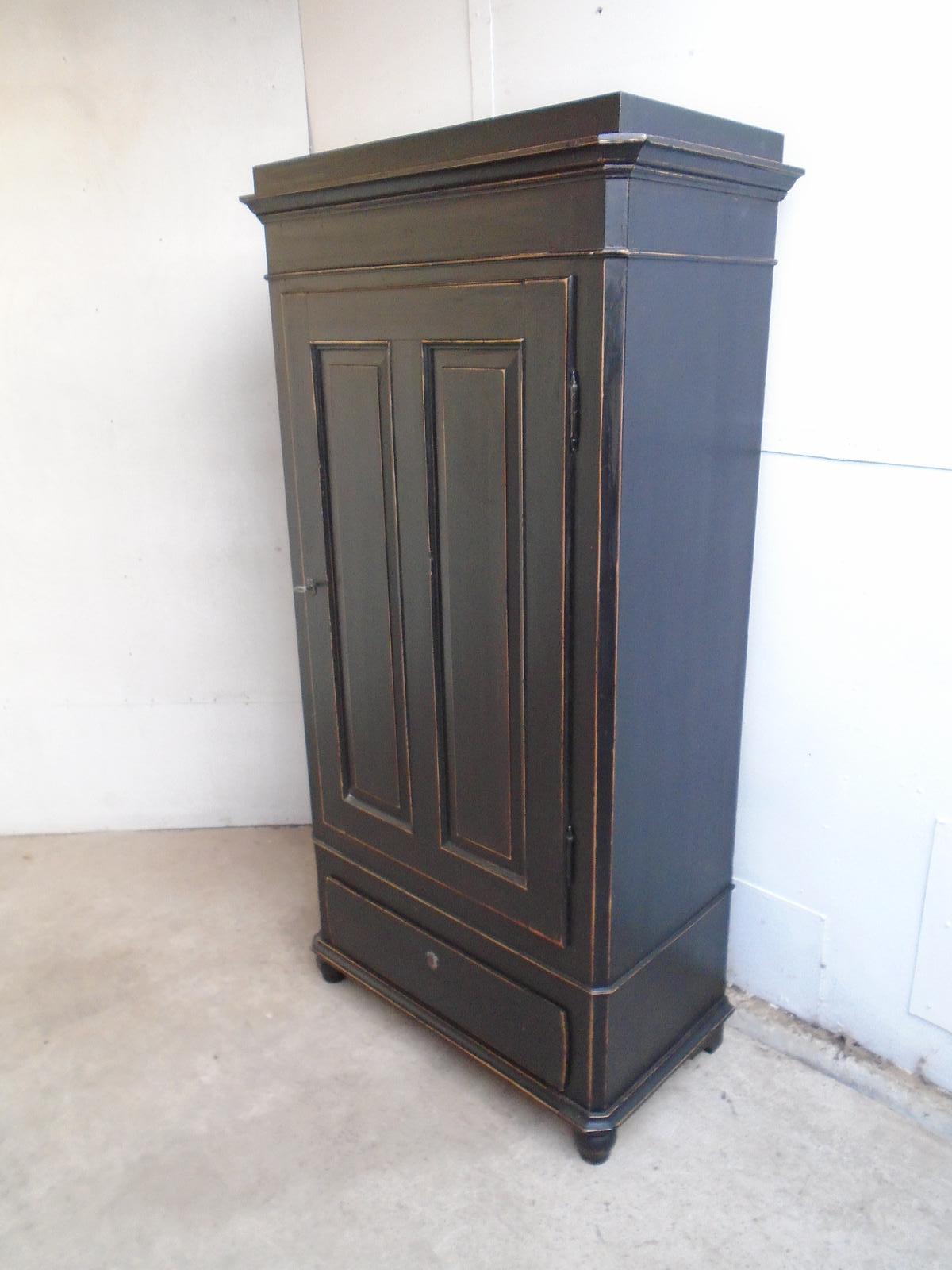 Trendy Painted Black 1 Door Antique Pine Kitchen / Linen / Hall Cupboard