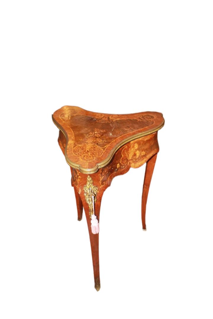 Triangular French Small Table in Louis XV Style, 19th Century, with Marquetry