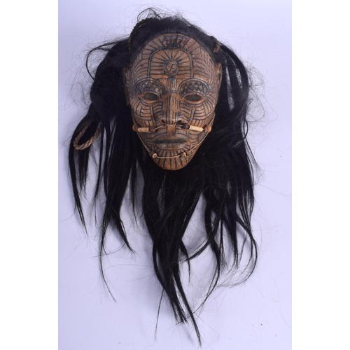 Tribal Carved & Lacquered Head of a Leader Possibly Maori or South American with Tattooed Face