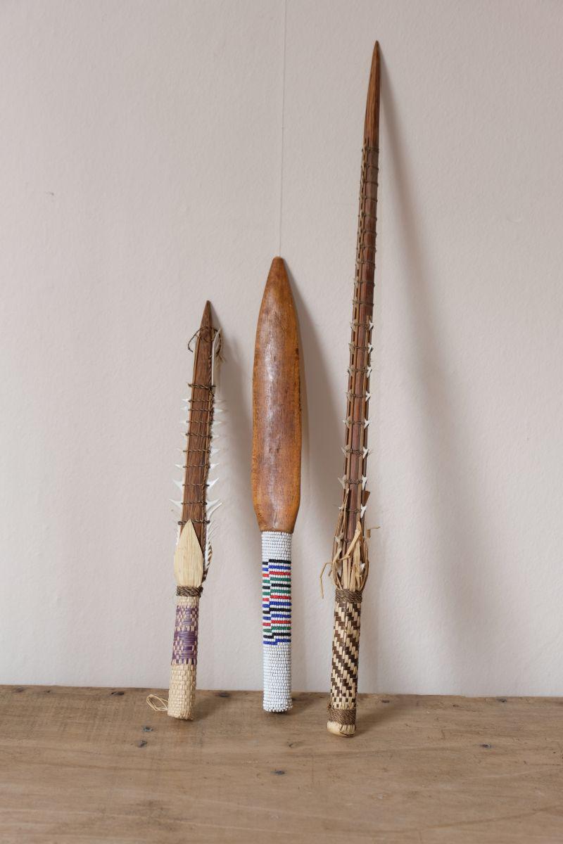 Tribal Wooden Spear with Beads & Ceremonial Decorative Pieces