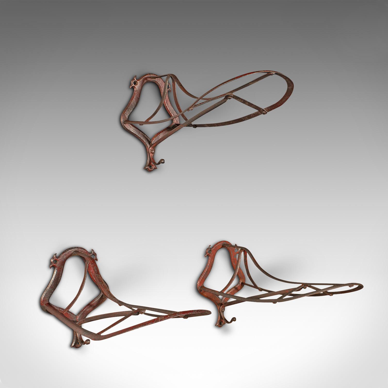 Trio Antique Saddle Racks, English, Cast Iron, Wall, Equestrian Rest, Victorian