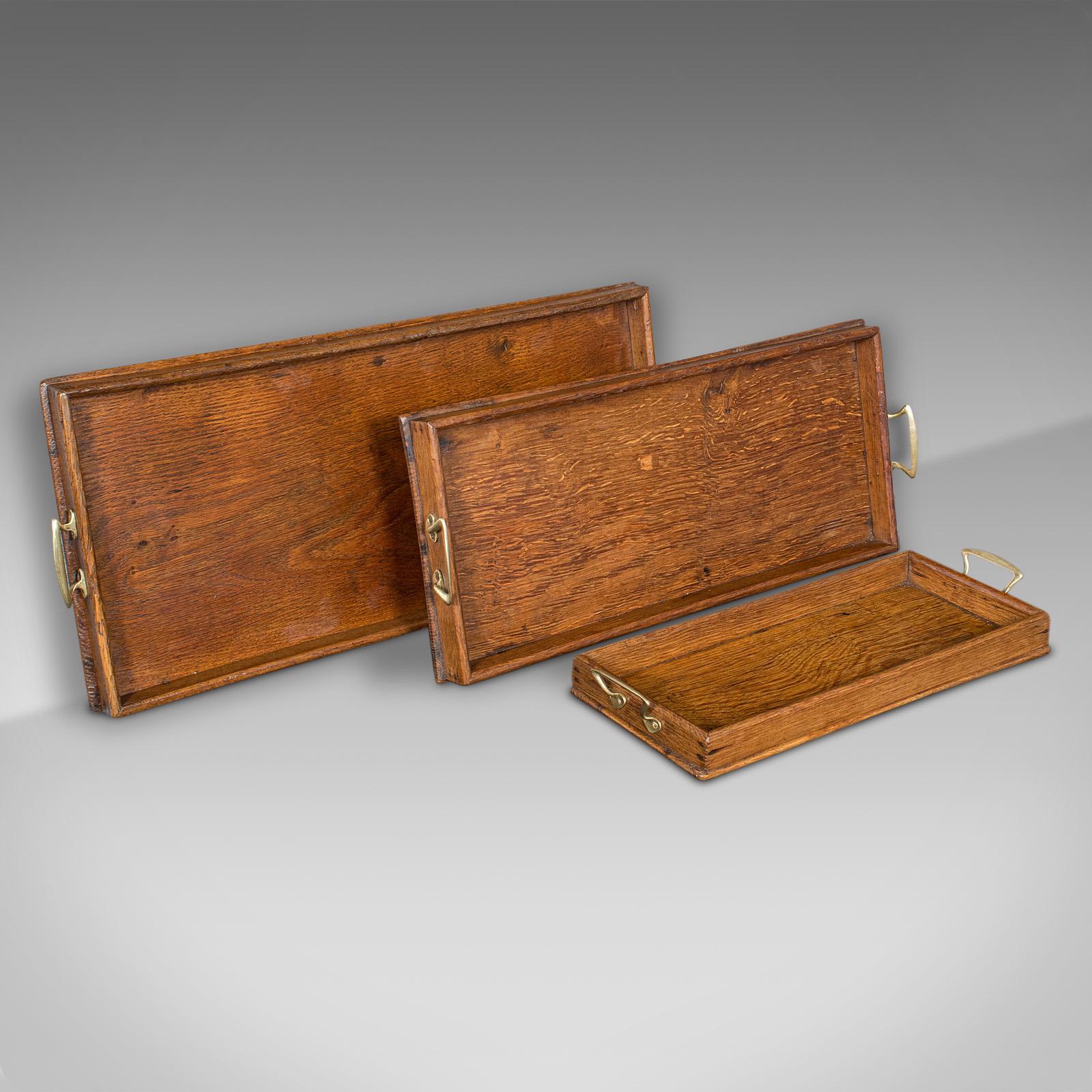 Trio of Antique Serving Trays, English, Oak, Nesting Set, Georgian c.1800
