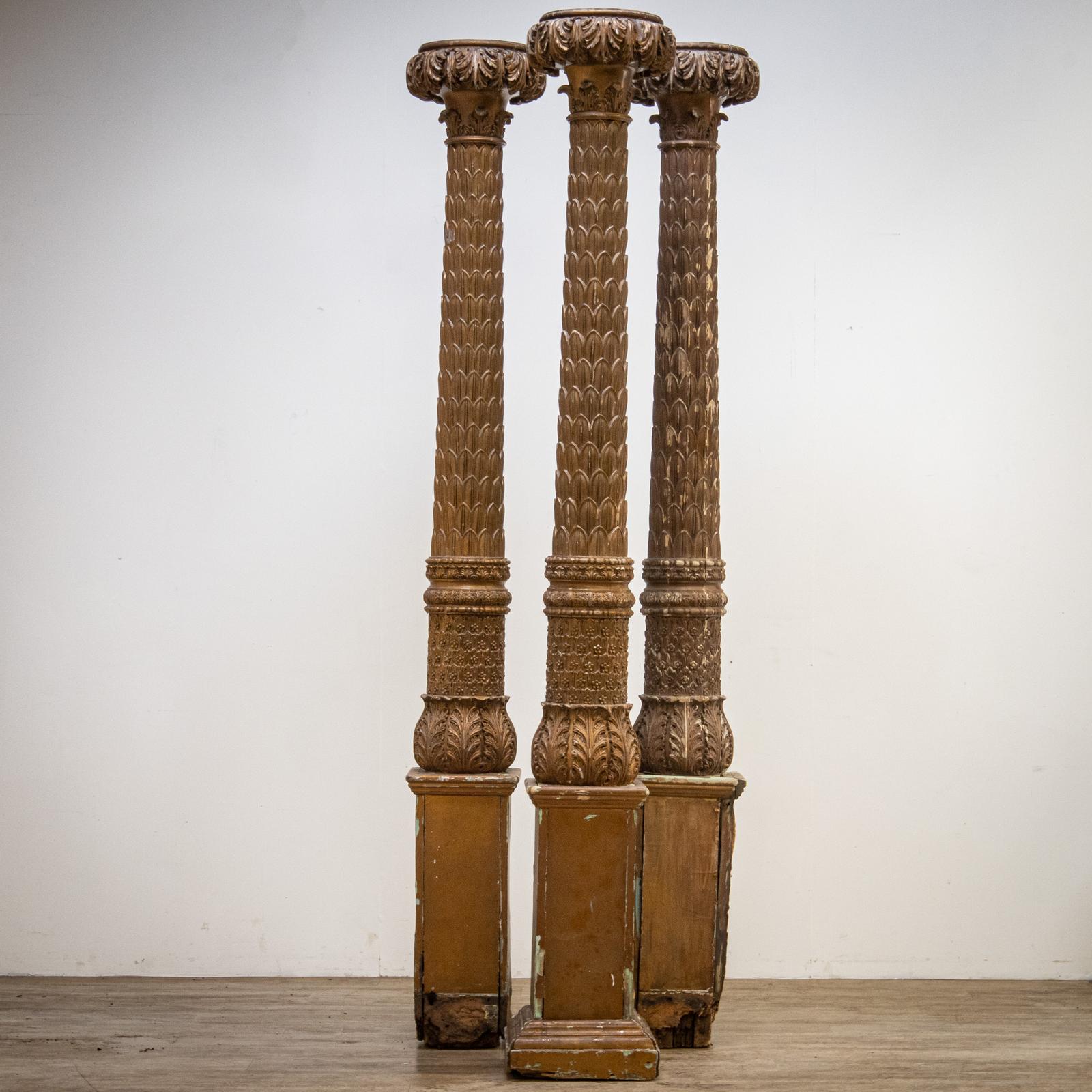 Trio of Baroque Style Gilded Wood Architectural Columns