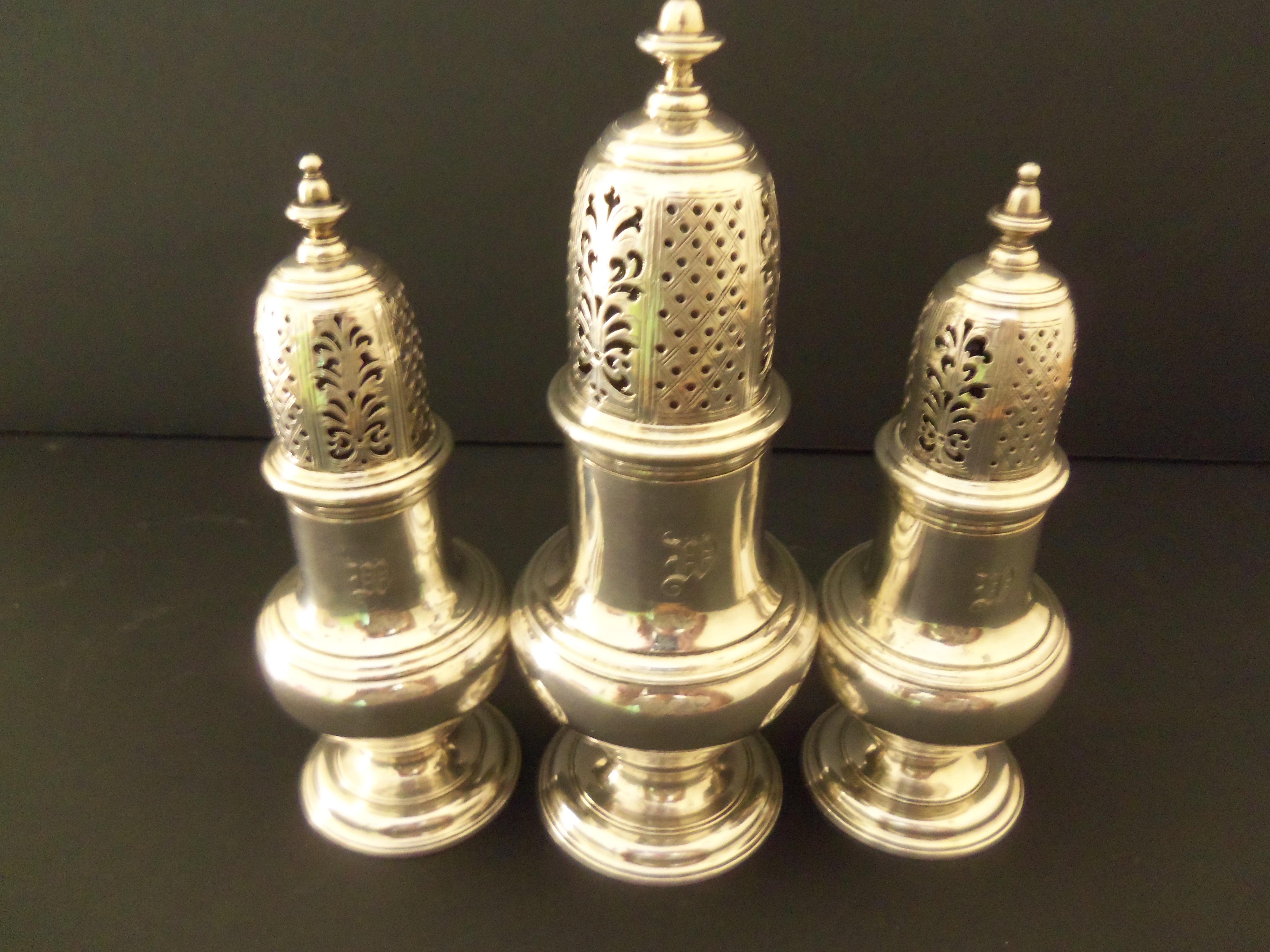 TRIO OF GEORGE 2ND CASTERS BY SAMUEL WOOD - 1750