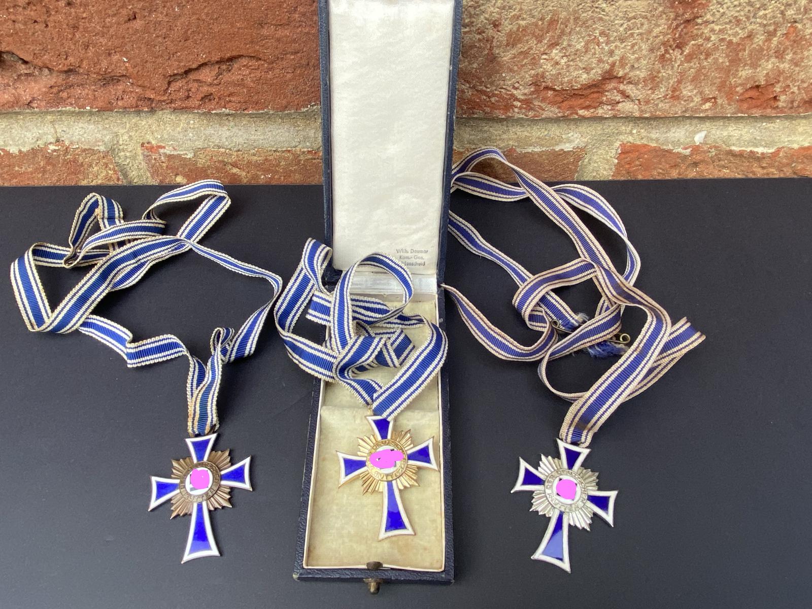 Trio of World War 2 German Mothers Mutter Crosses Boxed Gold, Silver & Bronze Cross