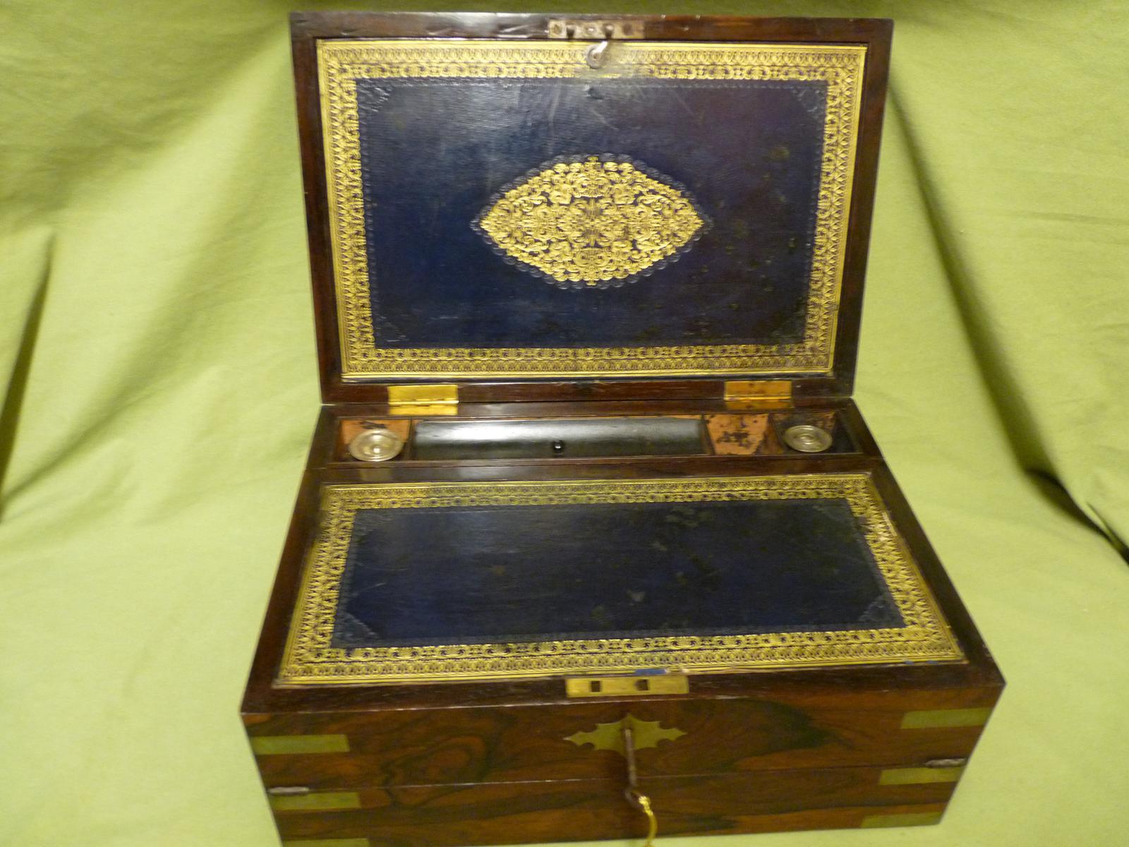 Triple Fold Rosewood Writing Box - Secret Drawers - Unusual Hinges c.1825