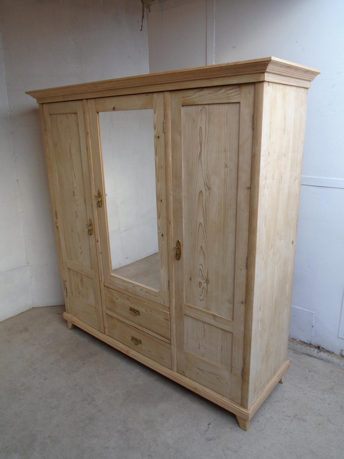 Triple Mirrored Large 6ft Antique Pine Knockdown Wardrobe to wax / paint