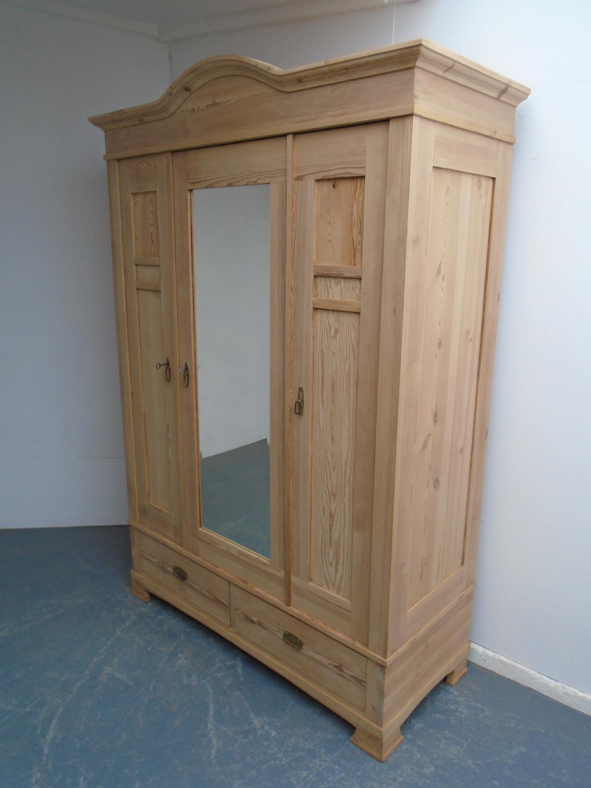Triple Mirrored Victorian Antique Pine Knockdown Wardrobe to wax / paint