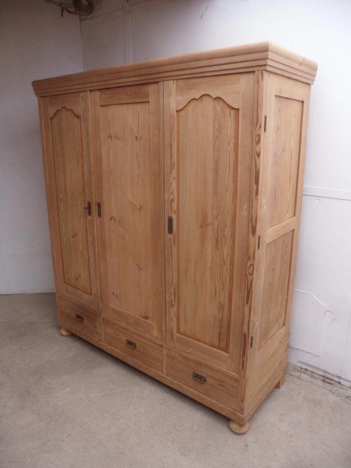 Triple Victorian Antique Pine 3 Door Knockdown Wardrobe to wax / paint