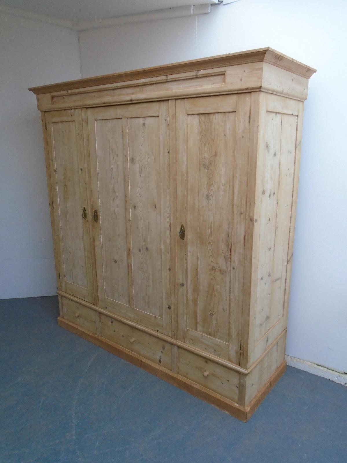 Triple Victorian Massive Antique Pine 3 Door Knockdown Wardrobe to wax / paint
