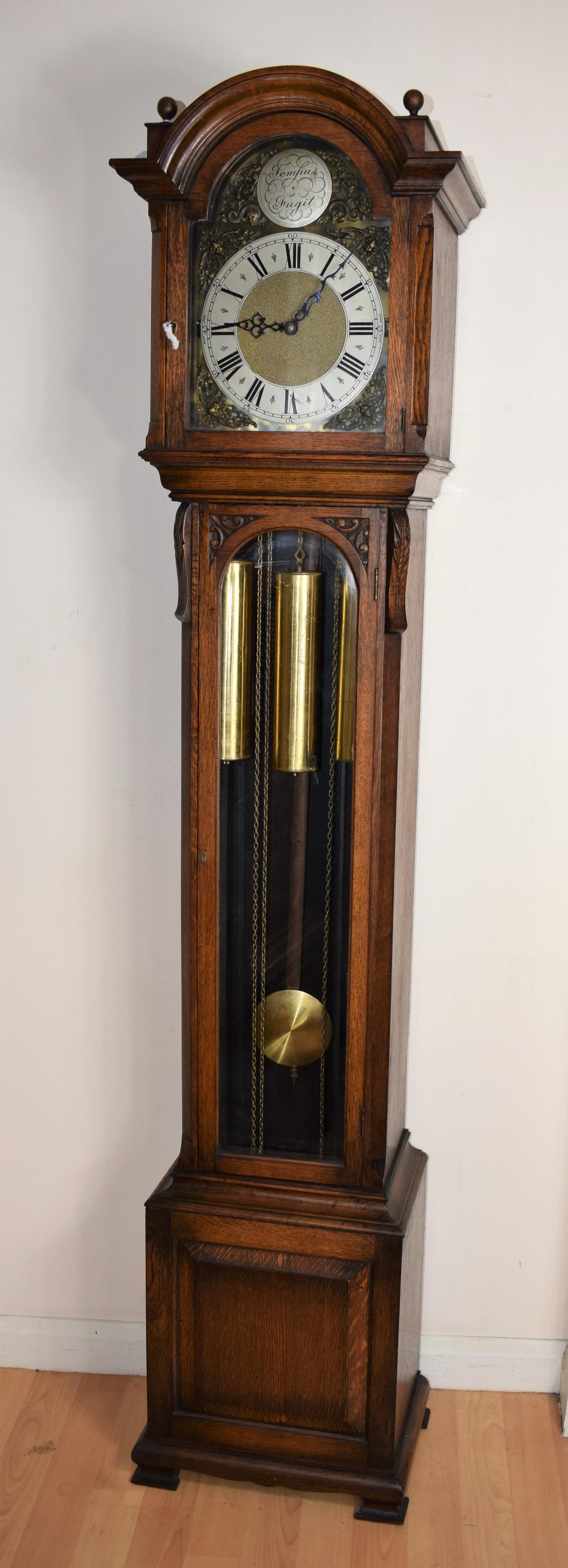 Triple Weight Westminster Chiming Musical Grandmother or Small Grandfather Oak Longcase Clock (1 of 7)