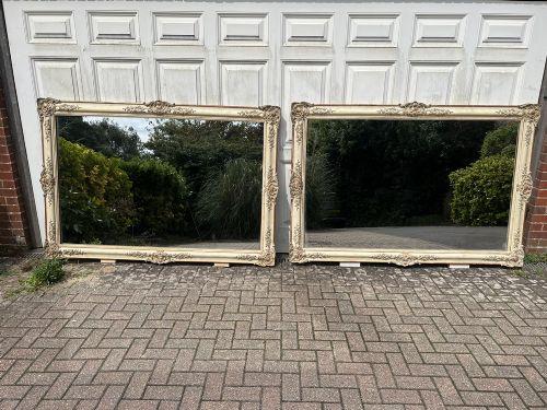 Truly Exceptional Pair of Antique French 19th Century Carved Wood & Gesso Original Cream & Gilt Louis Philippe Mirrors