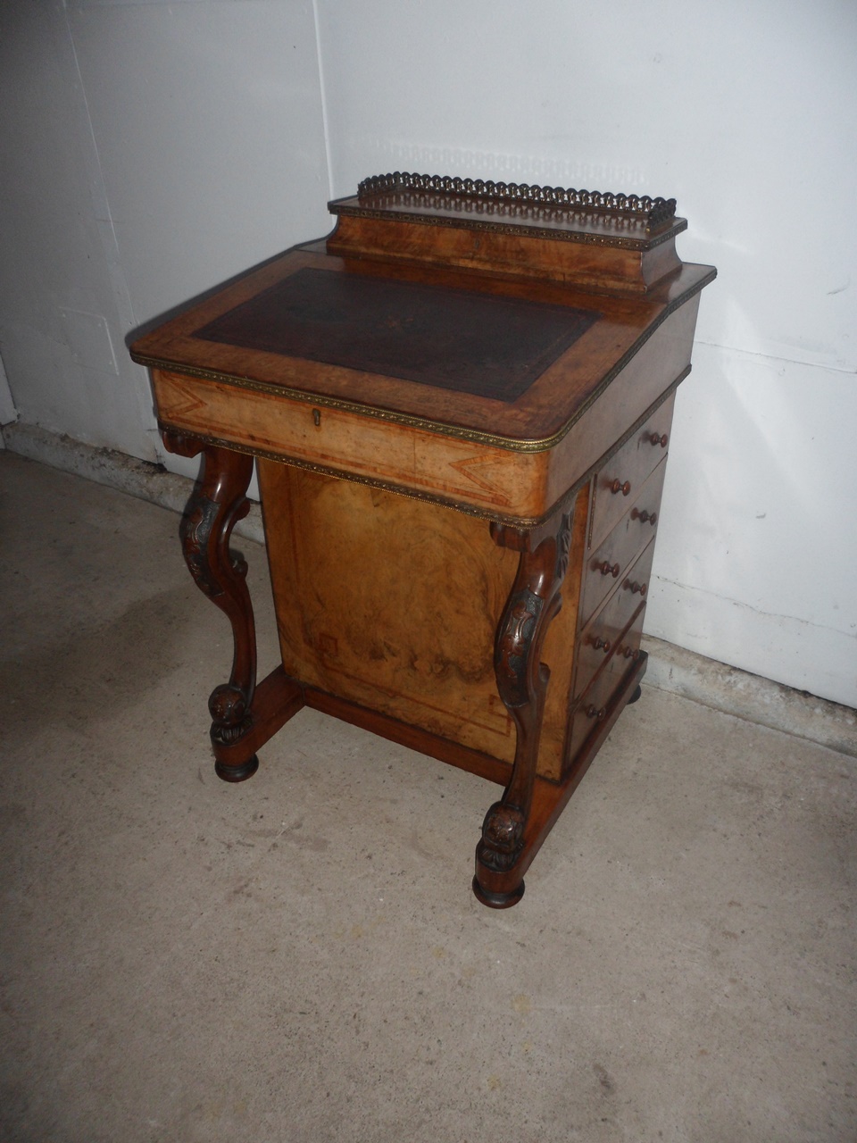 Truly Superb Original Early Victorian Walnut Inlaid Brass Bound Davenport / Desk