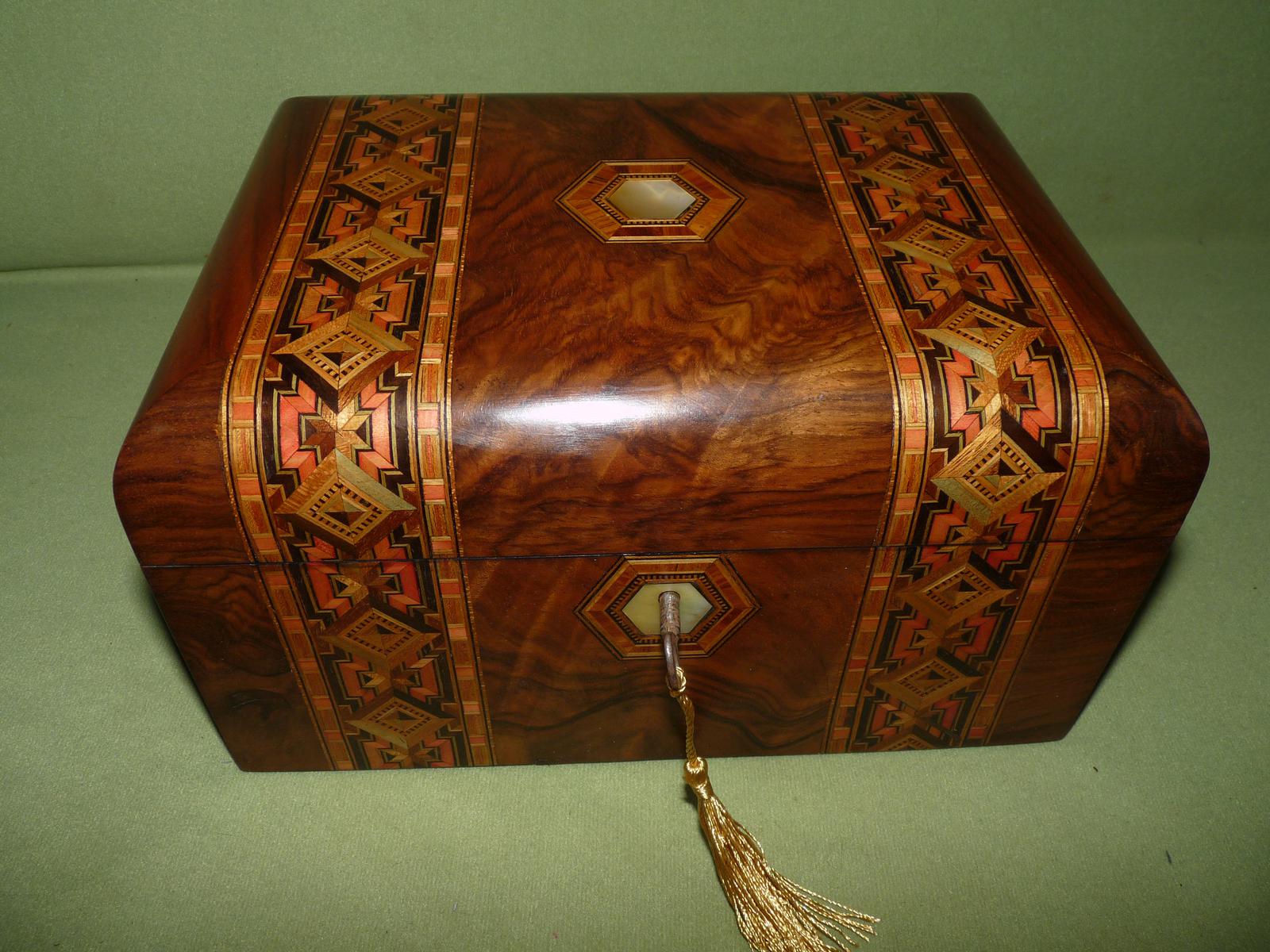 Tunbridge Ware Style Jewellery Box + Tray. Plush Interior