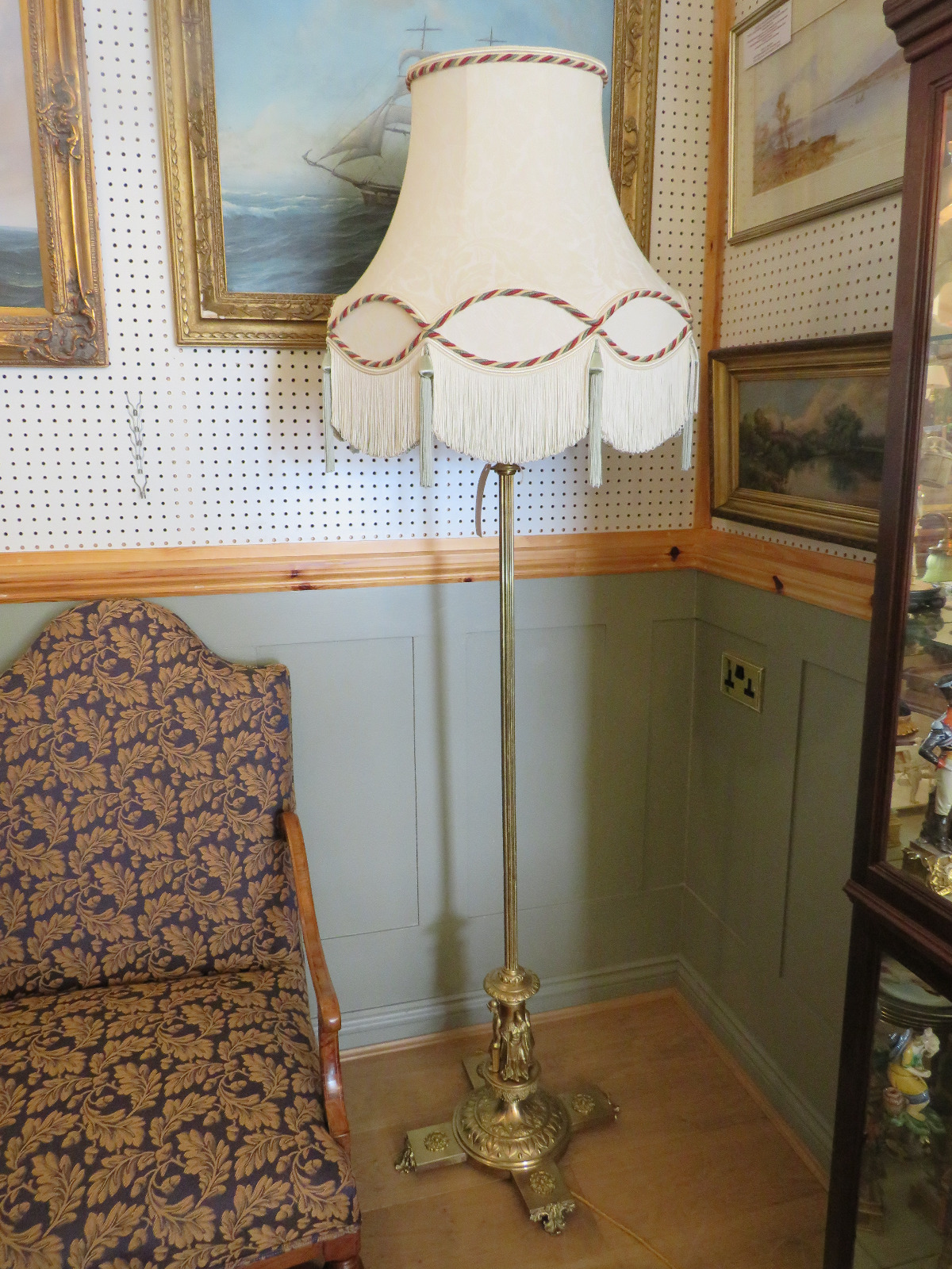 Tunning Gilt Brass Standard Lamp Downton Abbey Shade c.1910