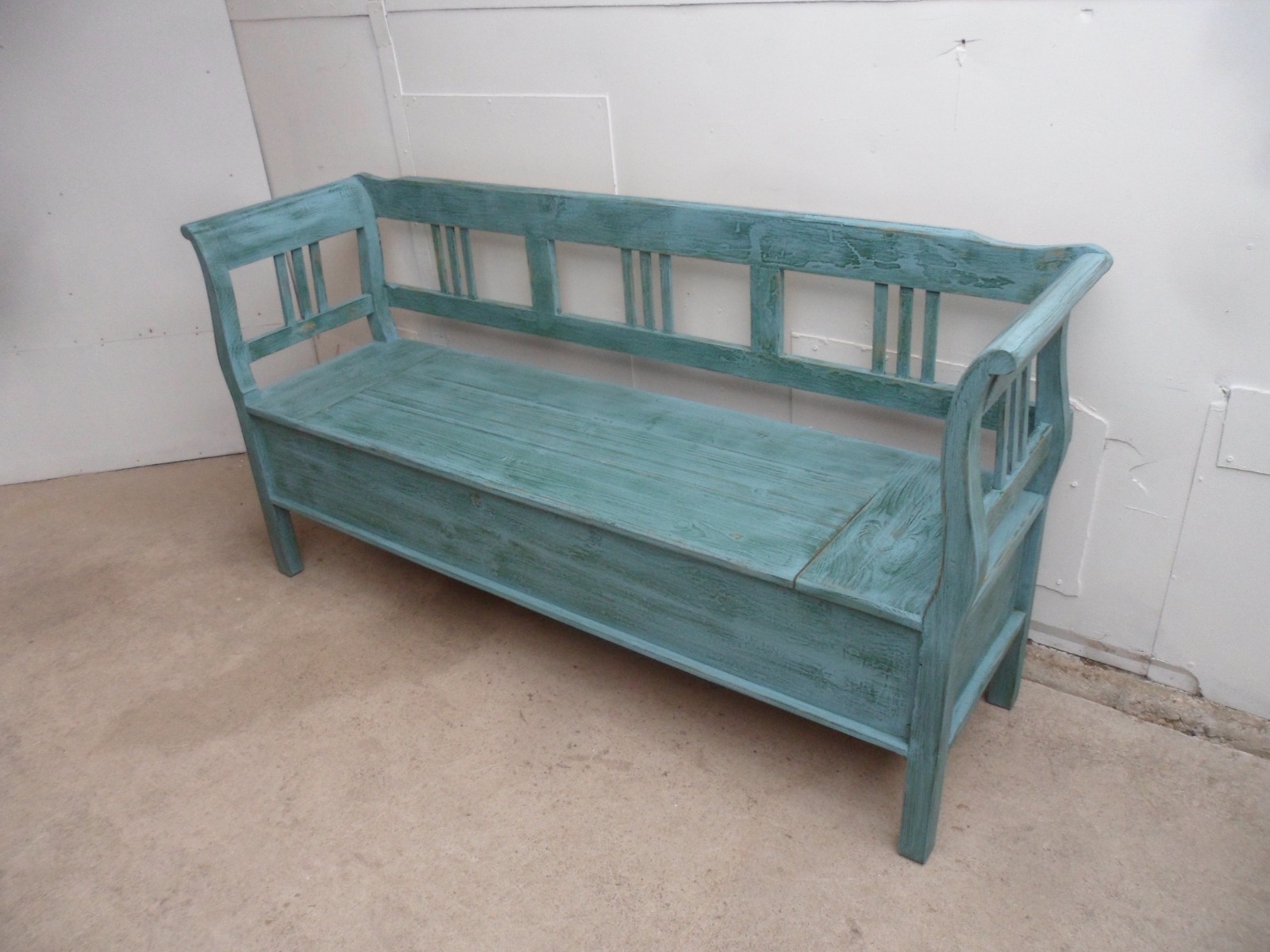 Turquoise Small Painted Antique Pine Hall / Kitchen Box / Settle / Bench