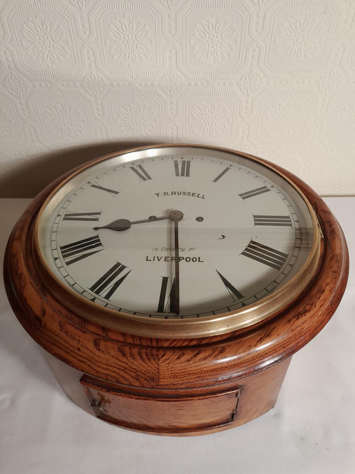 Twin-fusee, Bell Striking Wall Clock. Russell of Liverpool