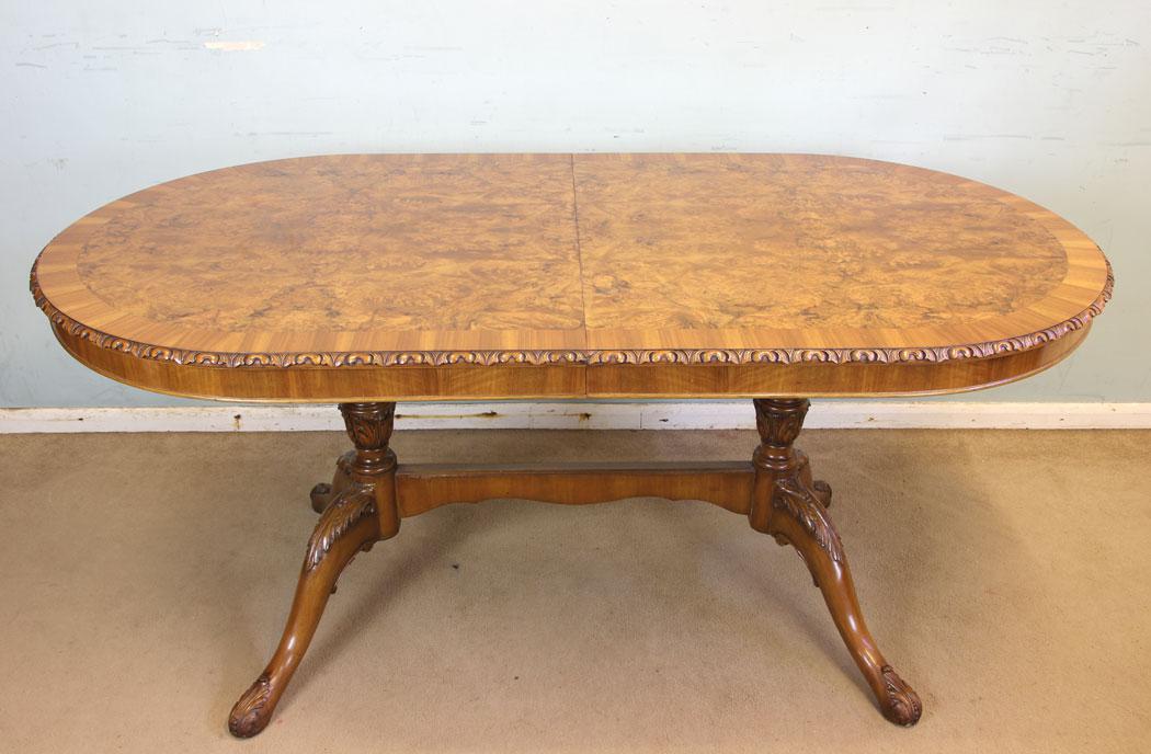 Twin Pedestal Burr Walnut Extending Dining Table (1 of 15)
