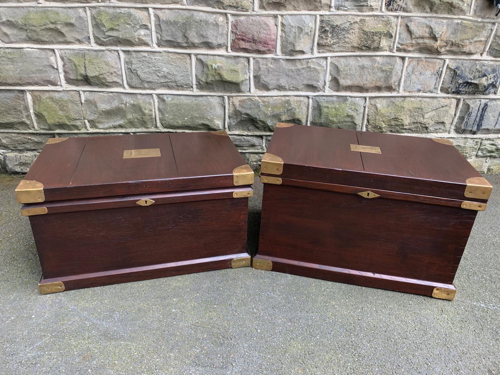 Two Antique Brass Bound Military Campaign Chests Trunks