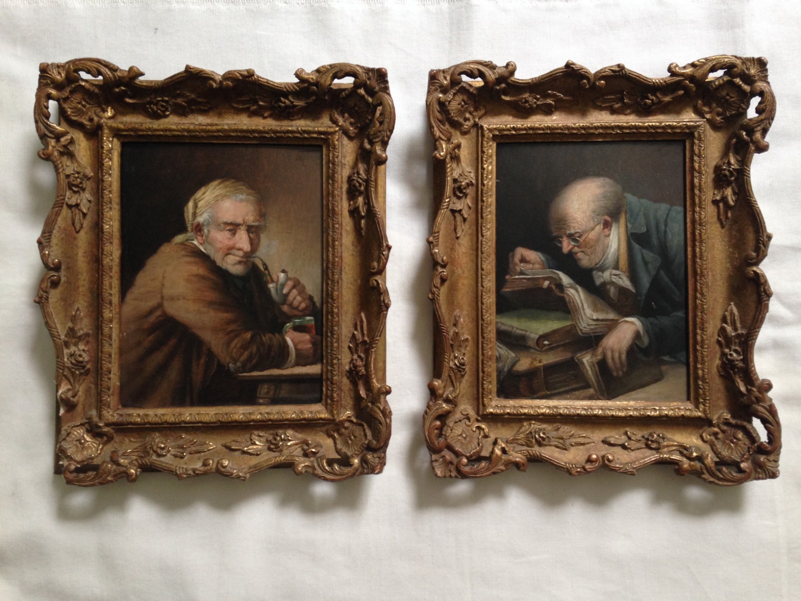 Two Antique Oil Paintings On Wooden Panels Signed European Scool circa 1900