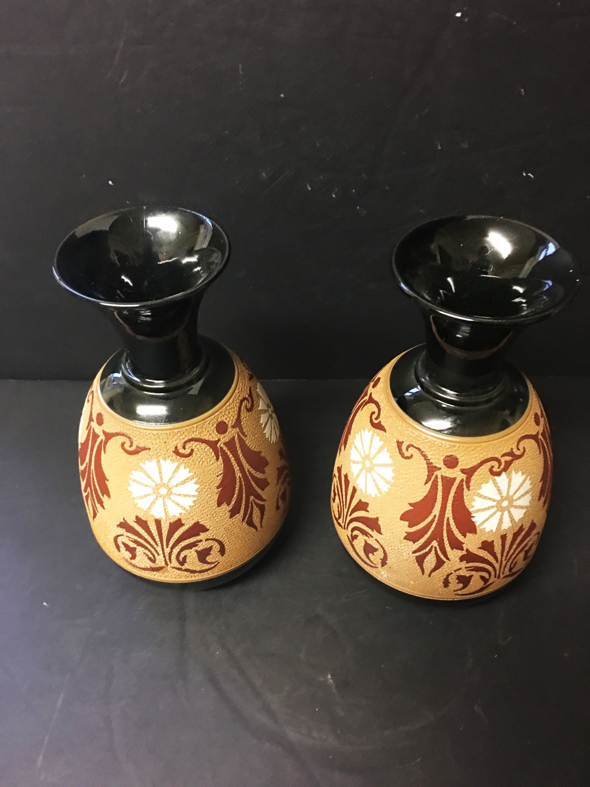 Two Black & Brown Ground Langley Vases