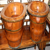 Two Chinese Wood and Metal Bound Baby Baths