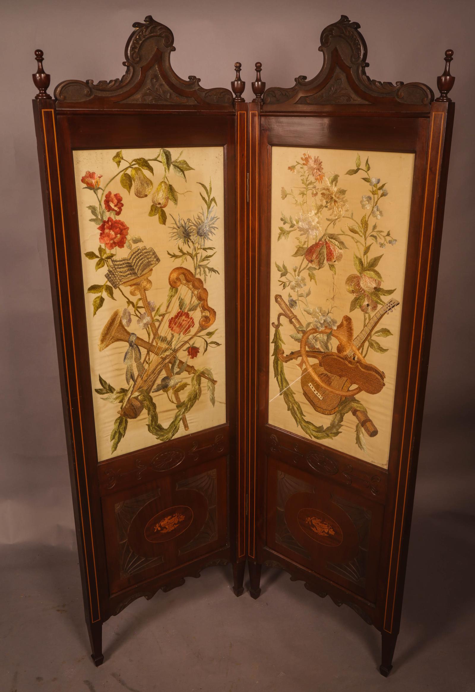 REF: A Super 2 fold screen needle work music and flowers / LA342902
