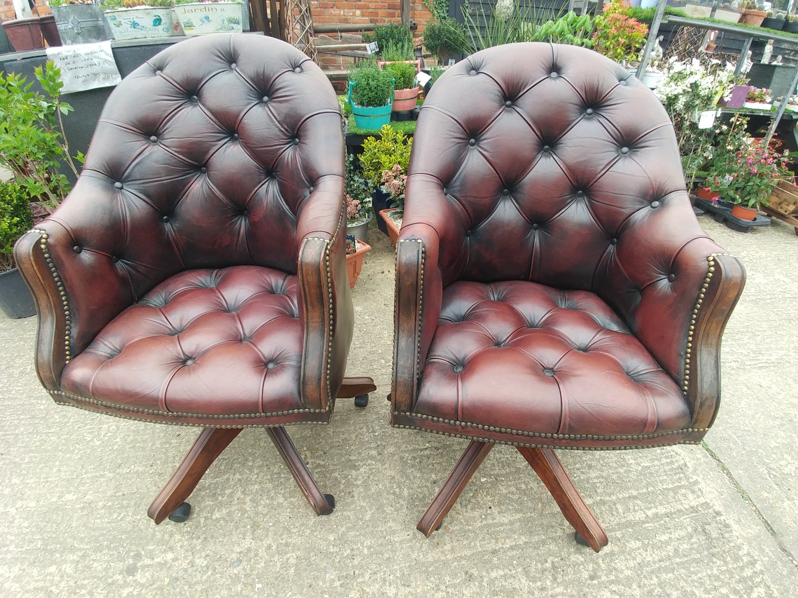 Two Leather Directors Chairs Swivel Tilt