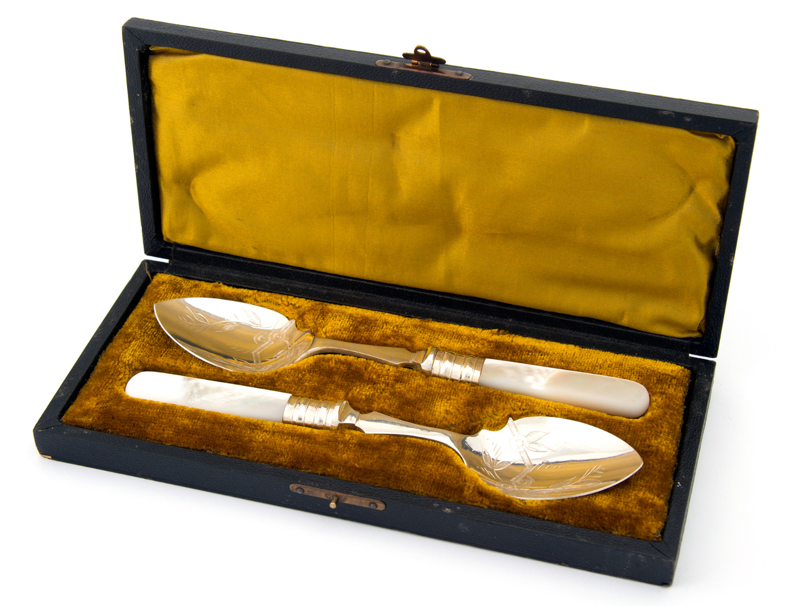 Two Piece Silver Plate & Mother of Pearl Jam Spoons (1 of 5)