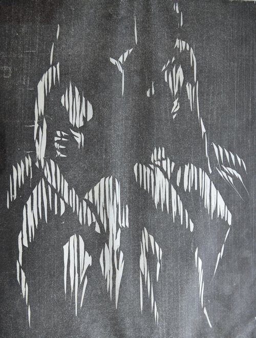 Two Seated Figures, Woodcut by Gerald Cole 1958