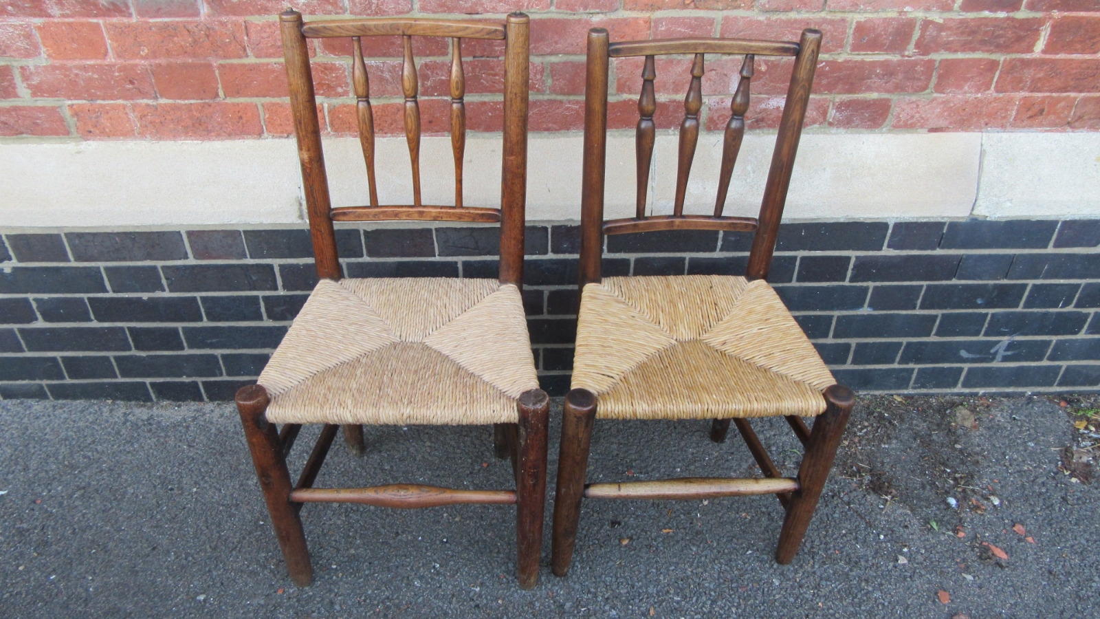 Two Similar Antique Rush Seated Country Chairs c.1870