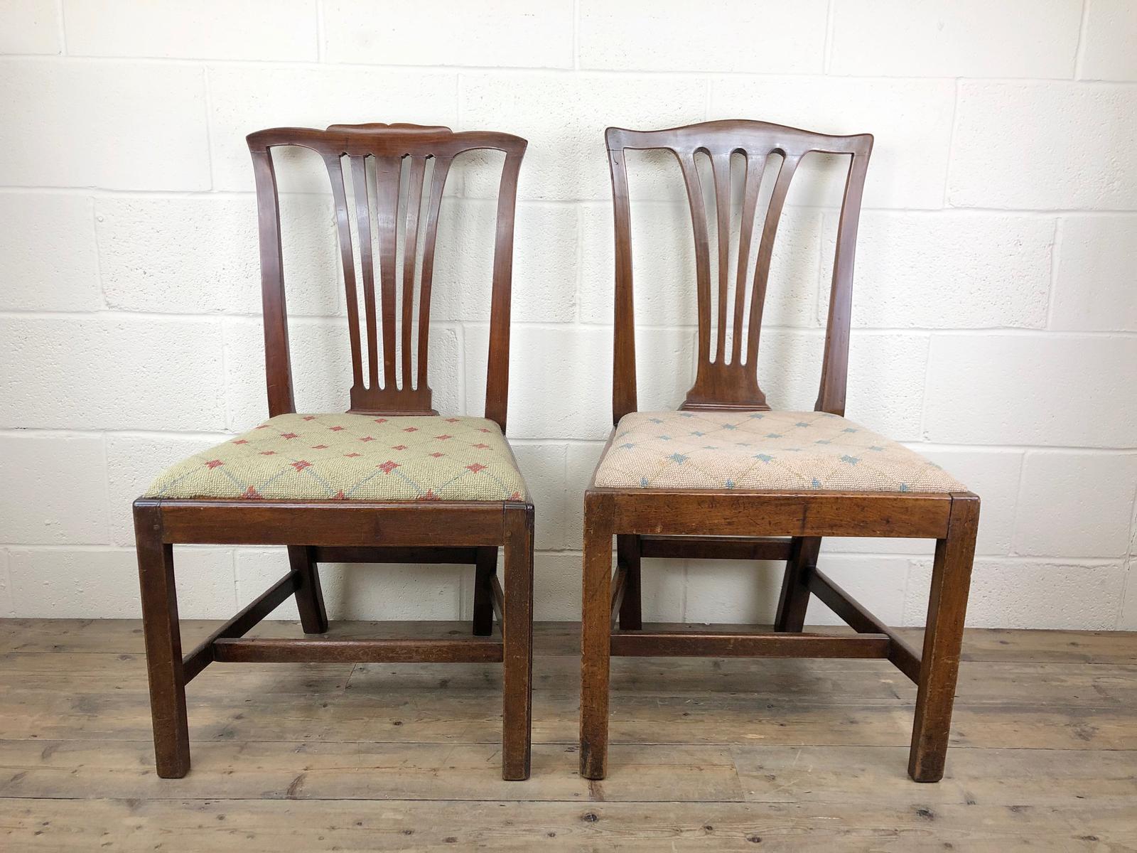 Two Similar Edwardian Mahogany Frame Chairs with Fabric Seats