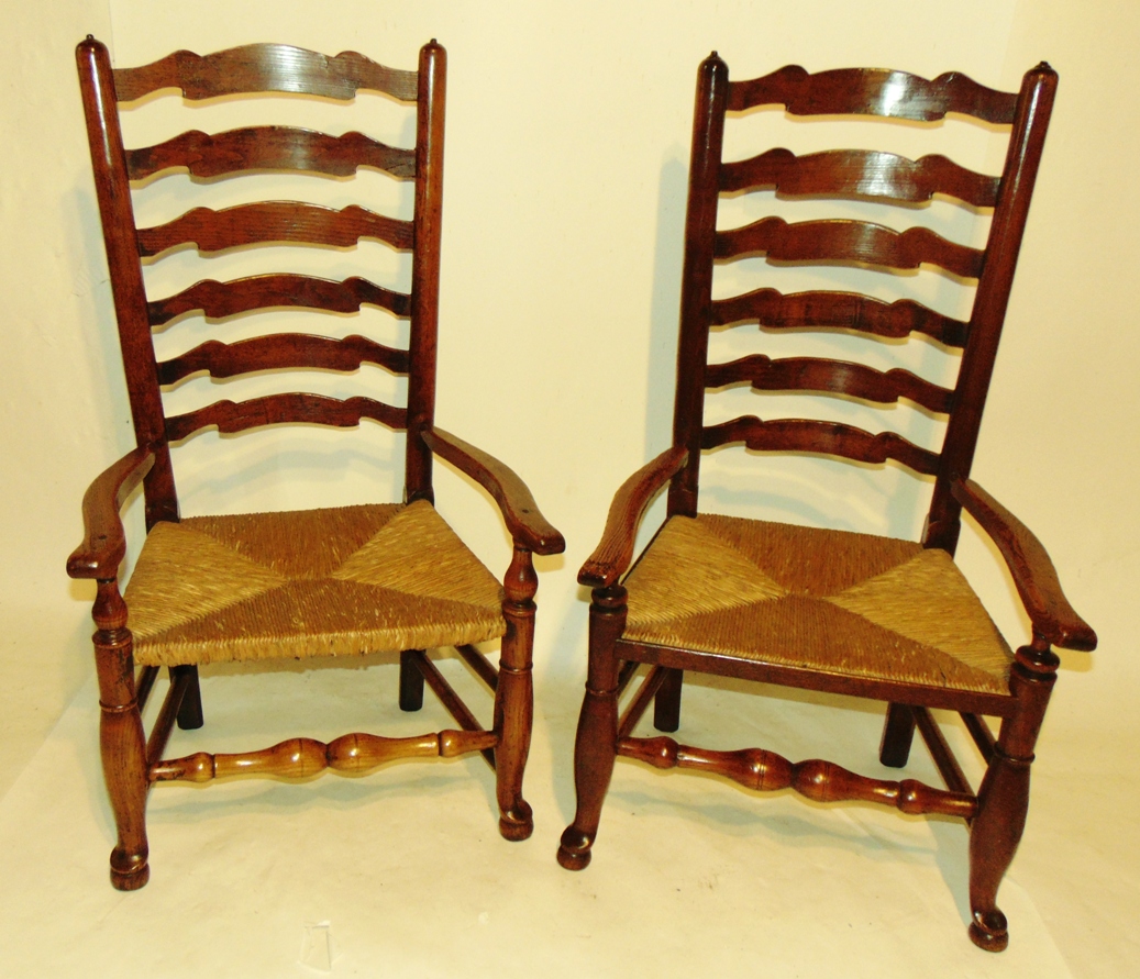 Two Similar Lancashire Ladder Back Nursing Chairs