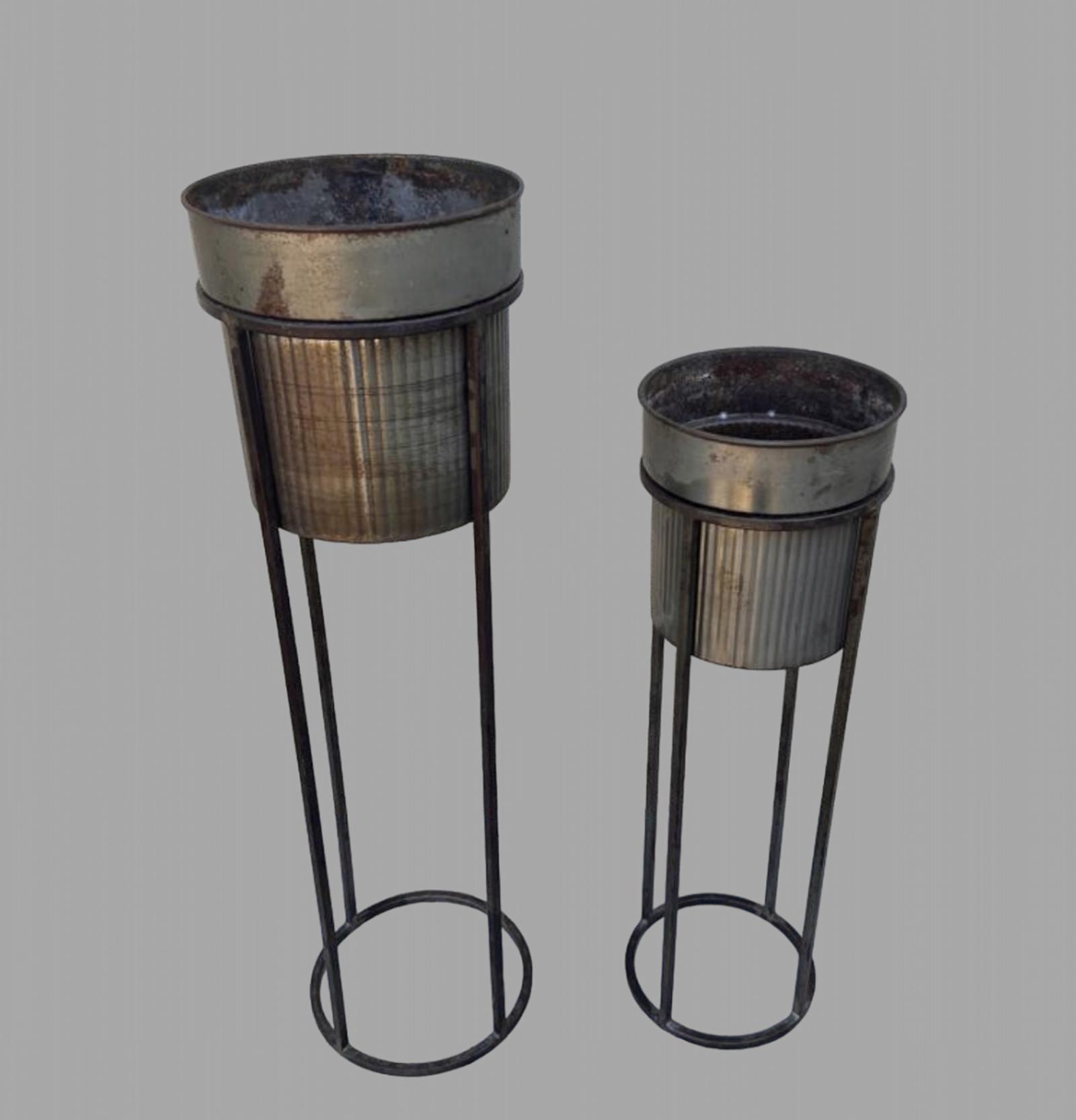 Two Standing Wrought Iron Planters