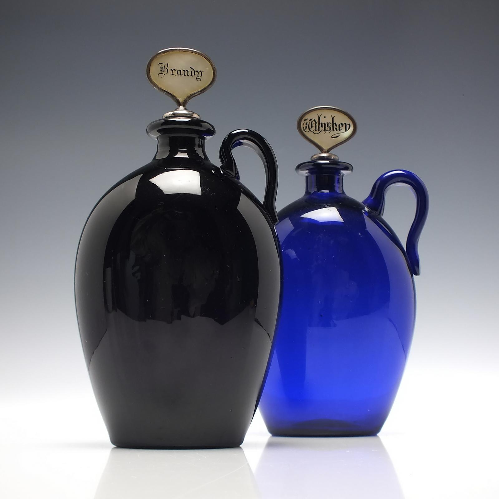 Two Victorian Glass Flagon Decanters Bristol Blue & Amethyst 1860
