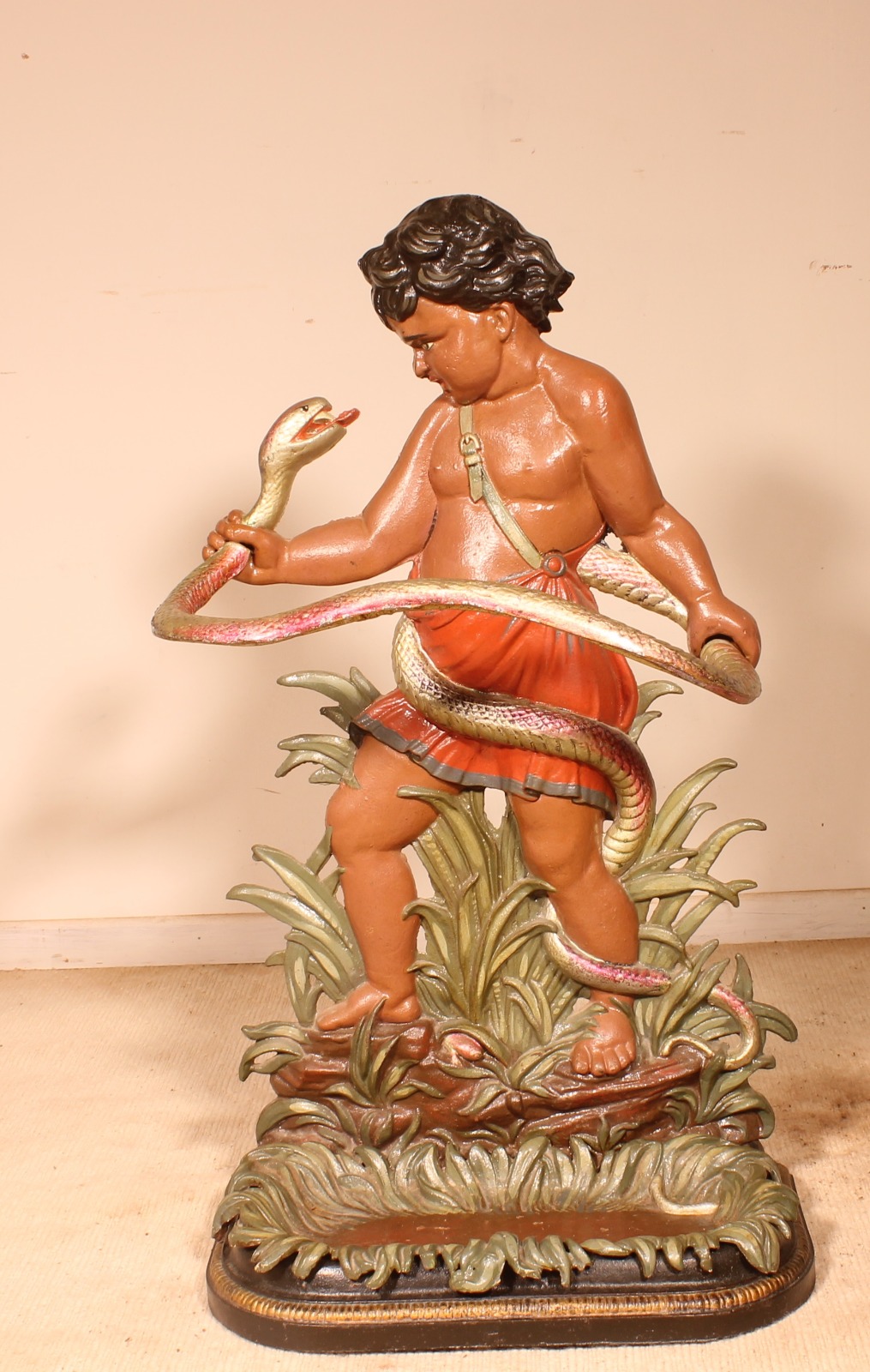 Umbrella Holder Cast Iron-19° Representative Hercules and the Serpant