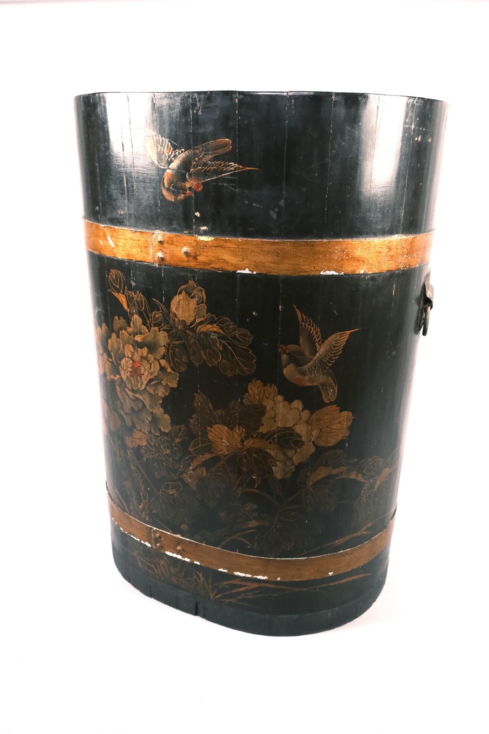 Discover a timeless piece of history with the exquisite antique painted umbrella/stick stand from Hutton-Clarke Antiques, dating back to circa 1920. Crafted in a captivating coopered form, this exceptional piece features its original decorative paint and handles, showcasing the craftsmanship of a bygone era. Imbued with charm and character, it serves as an ideal storage solution for both umbrellas and walking sticks, seamlessly blending functionality with vintage allure.