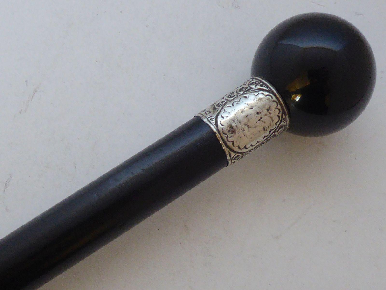 Undertakers Walking Stick Cane 1898 Hallmarked Solid Silver Collar Ebony Shaft