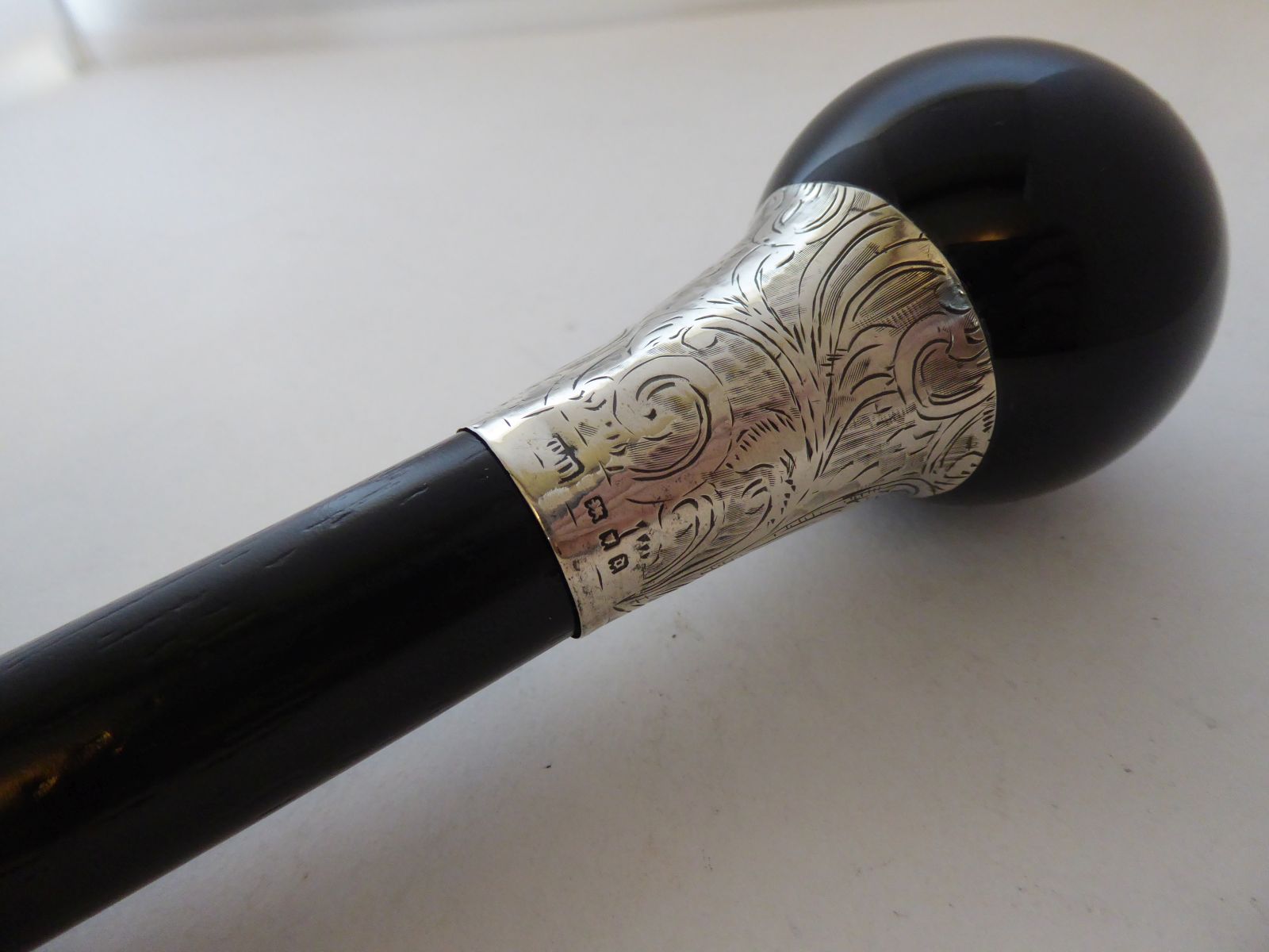 Undertakers Walking Stick Cane 1919 Hallmarked Solid Silver Ebony Wood Shaft