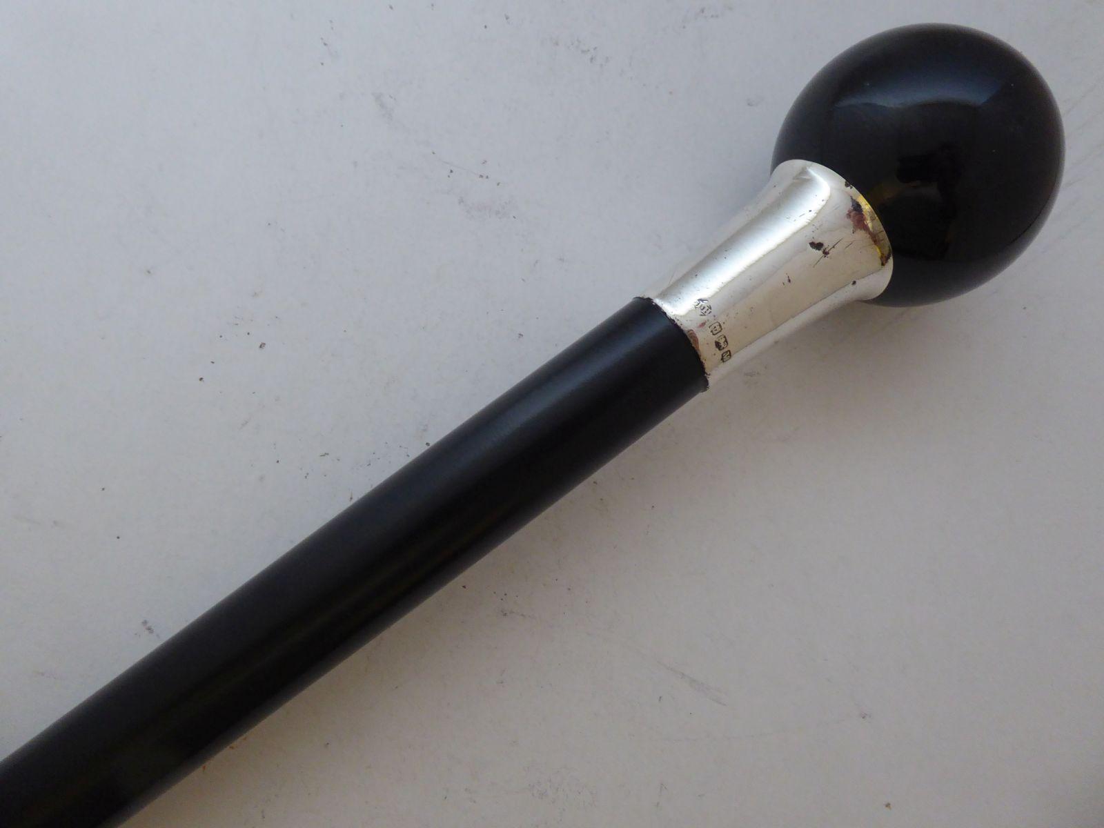 Undertakers Walking Stick Cane 1920 Hallmarked Silver Collar Ebony Shaft