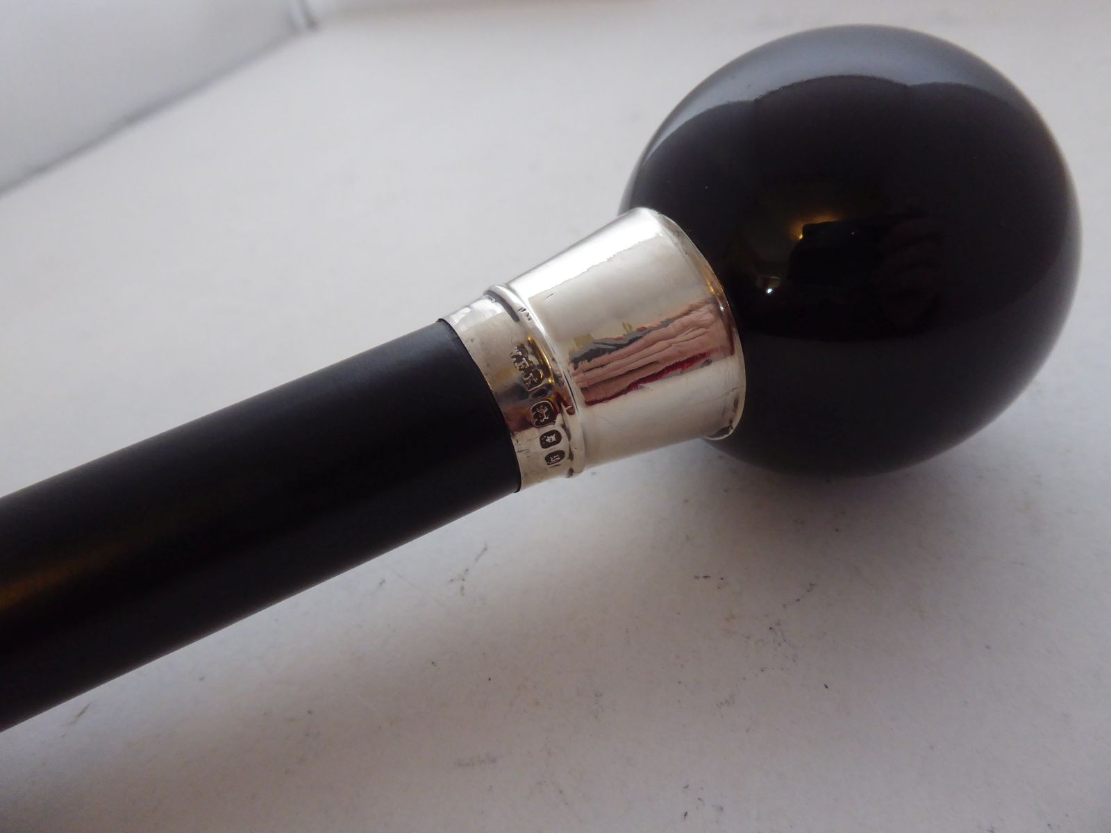 Undertakers Walking Stick Cane 1922 Hallmarked Solid Silver Pommel Ebony Shaft